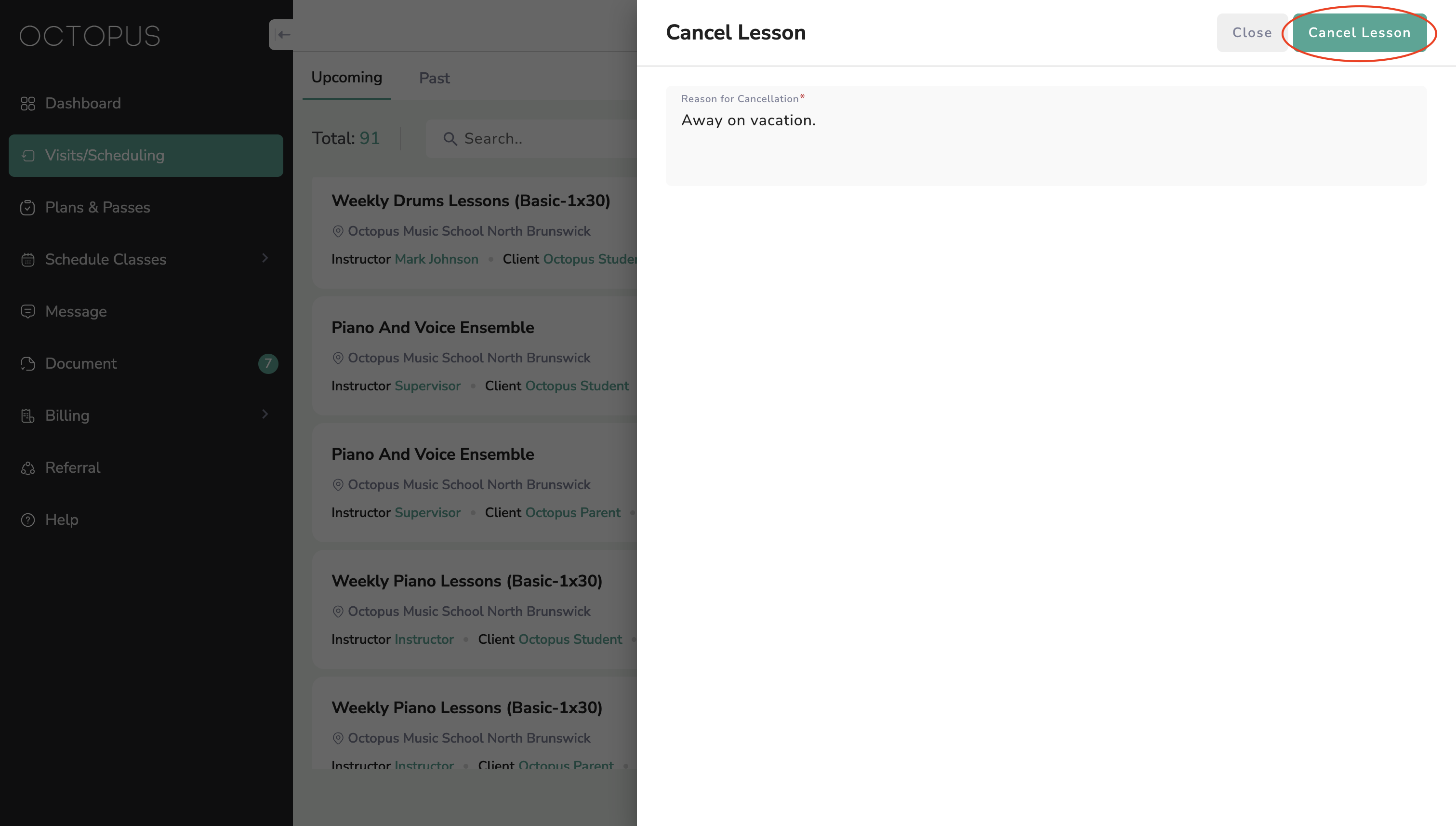 Please follow the steps below to cancel your private lesson at Octopus.