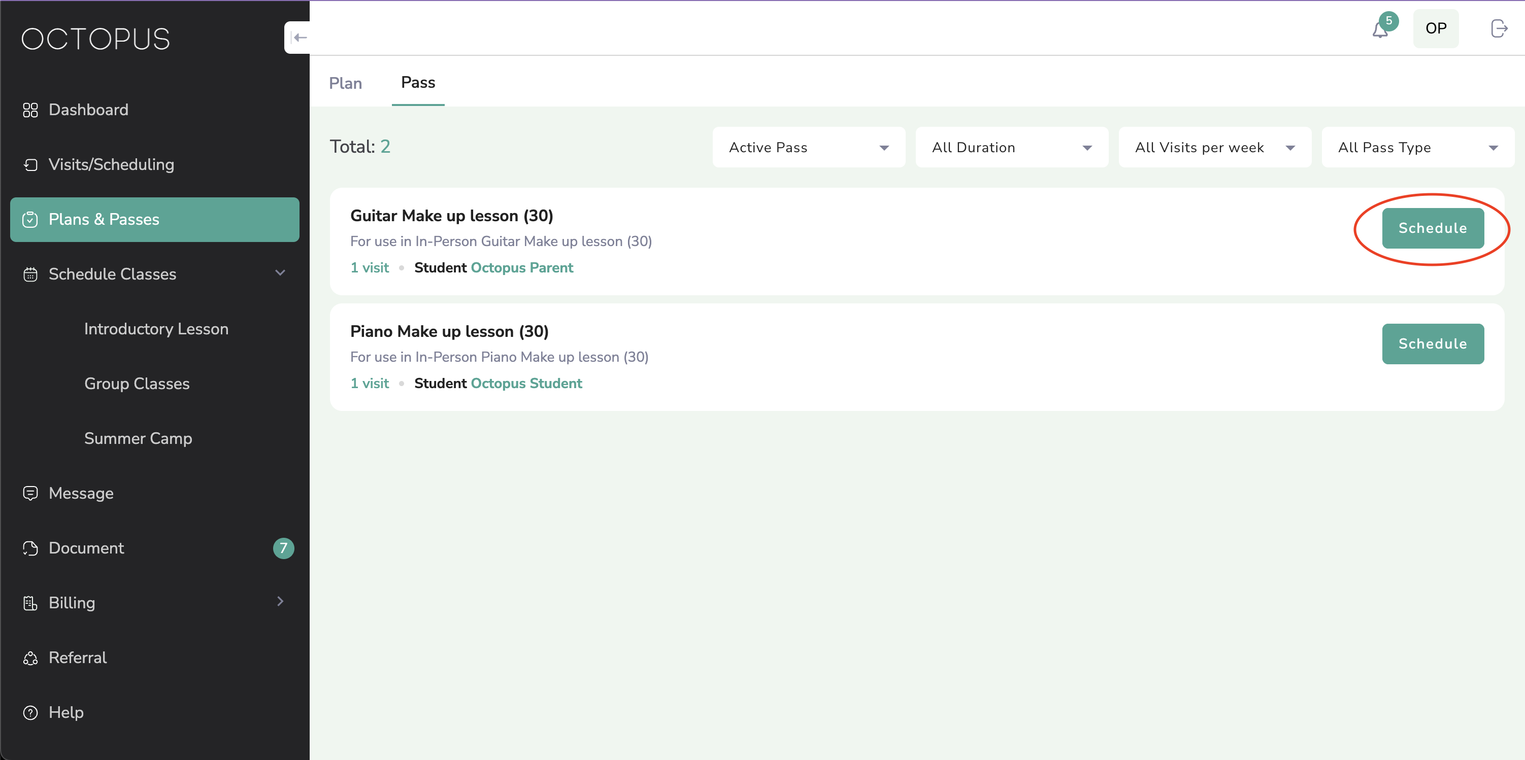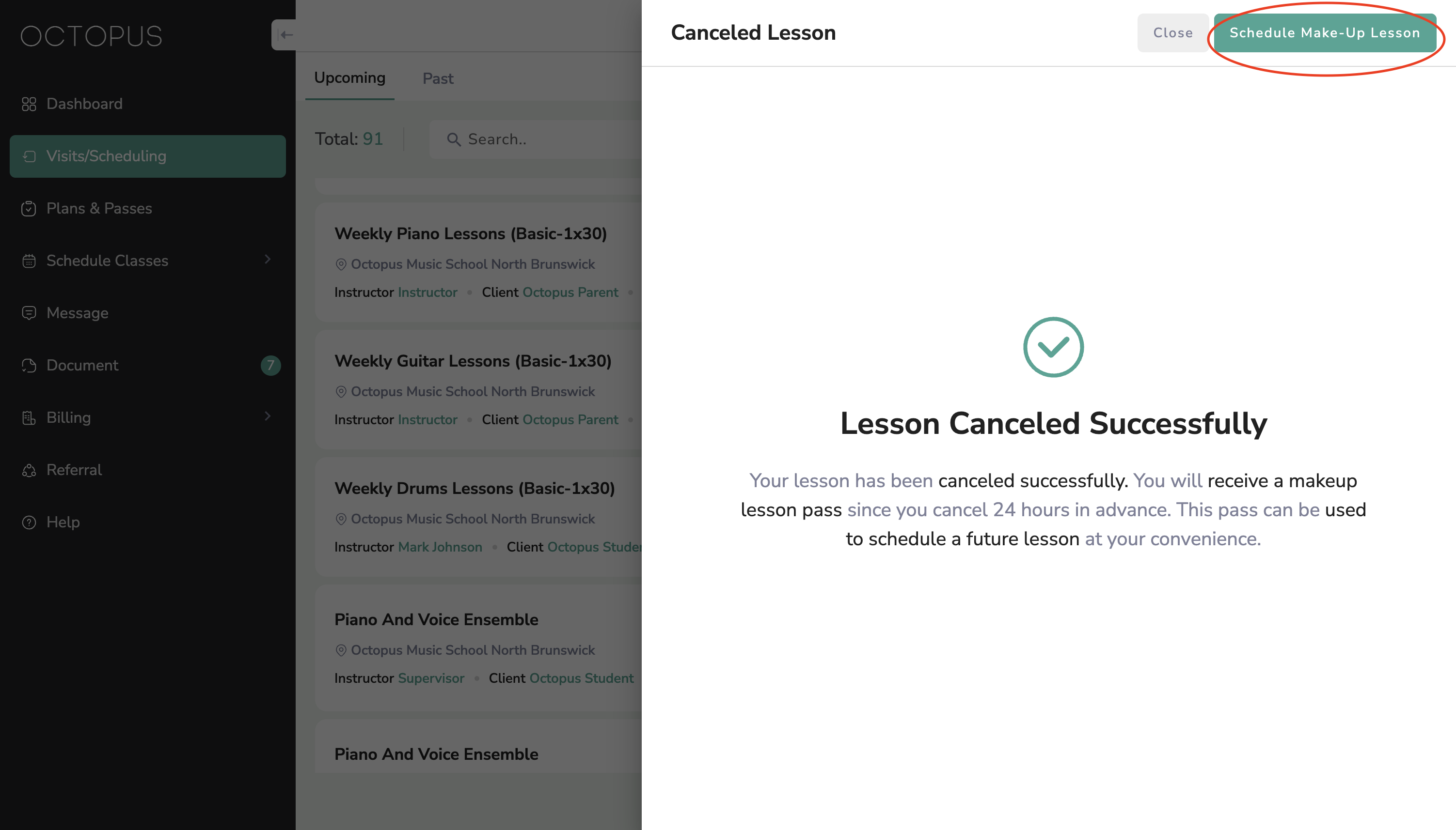 Instructions to schedule a make-up lesson