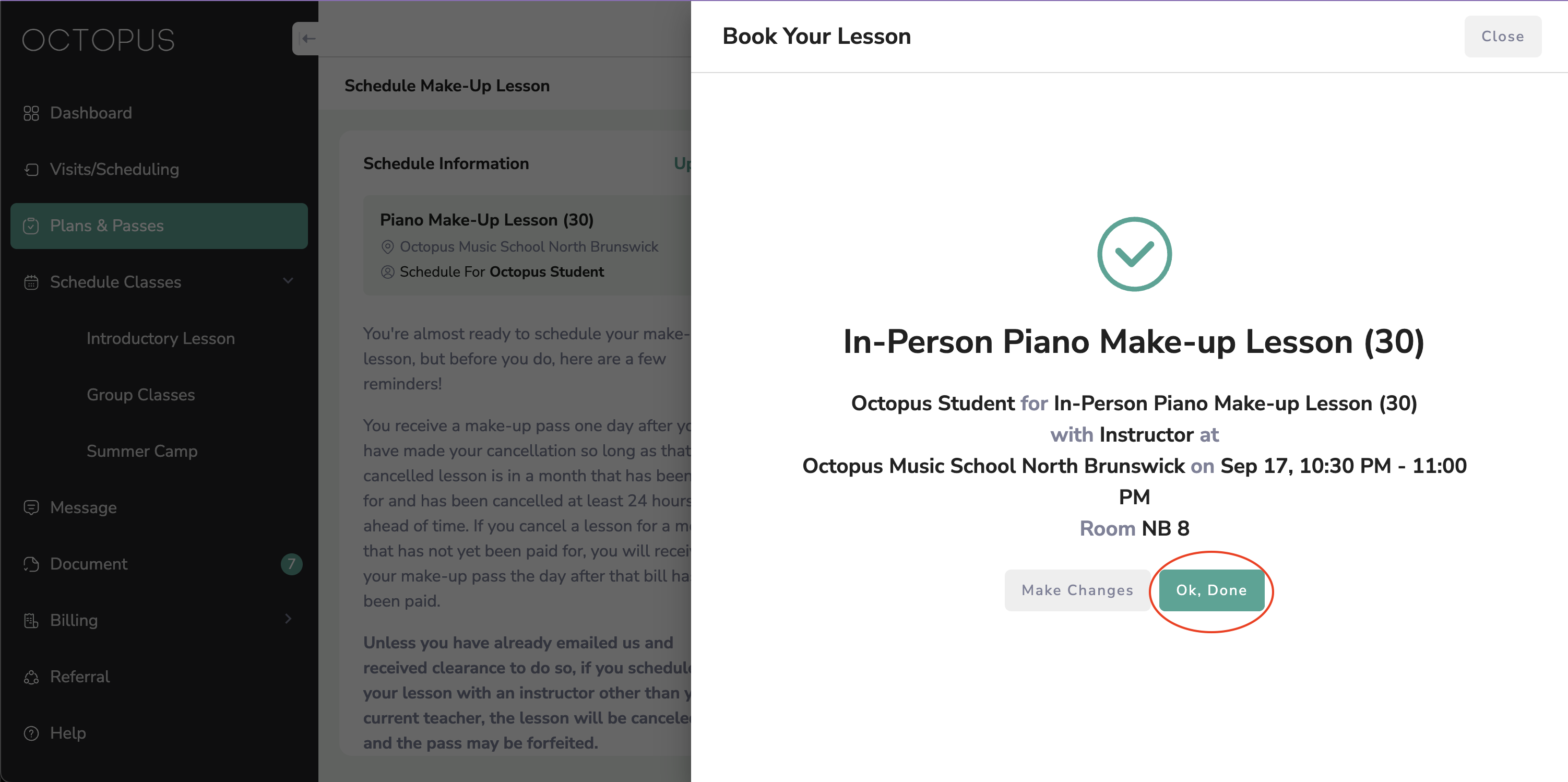 Step 5: Finish booking make-up lesson